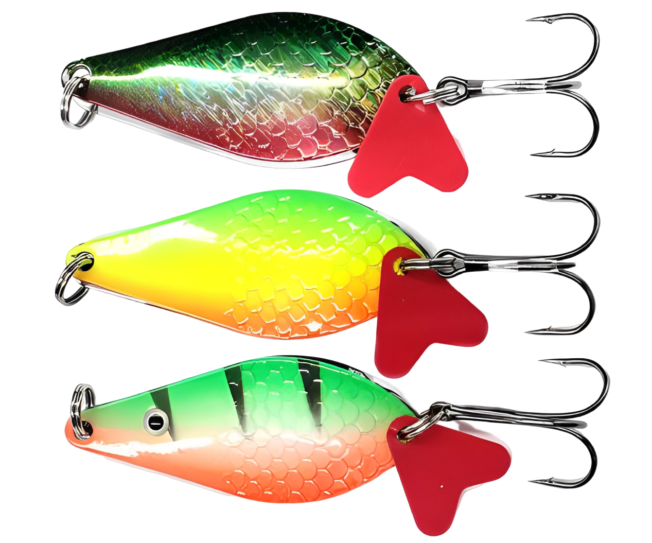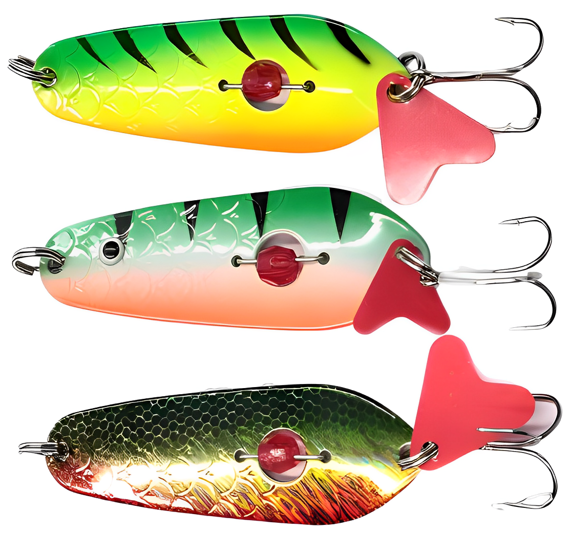 Колеблющиеся блесны отличаются разнообразием форм, но на некоторых из них можно увидеть дополнительные элементы, такие как плавники. Эти плавнички служат для стабилизации игры приманки как в поперечном, так и в продольном направлении, уменьшая вероятность срыва во вращение при активной проводке.