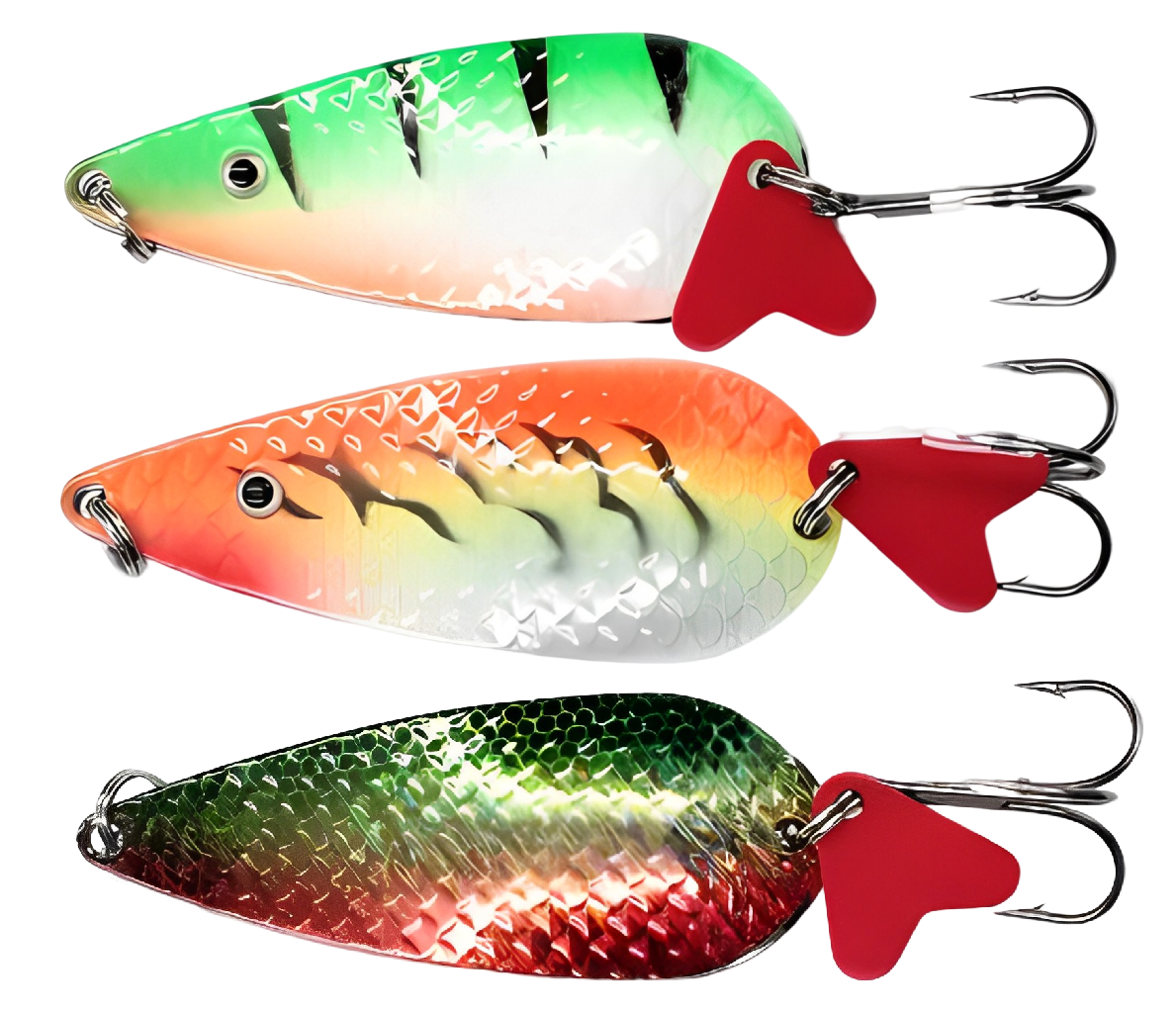 Часто у тройника можно заметить пластиковый хвостик или хвостик из цветных или блестящих ниток. Считается, что такой дополнительный «обвес» увеличивает турбулентность воды, создавая дополнительное раздражение для хищника.