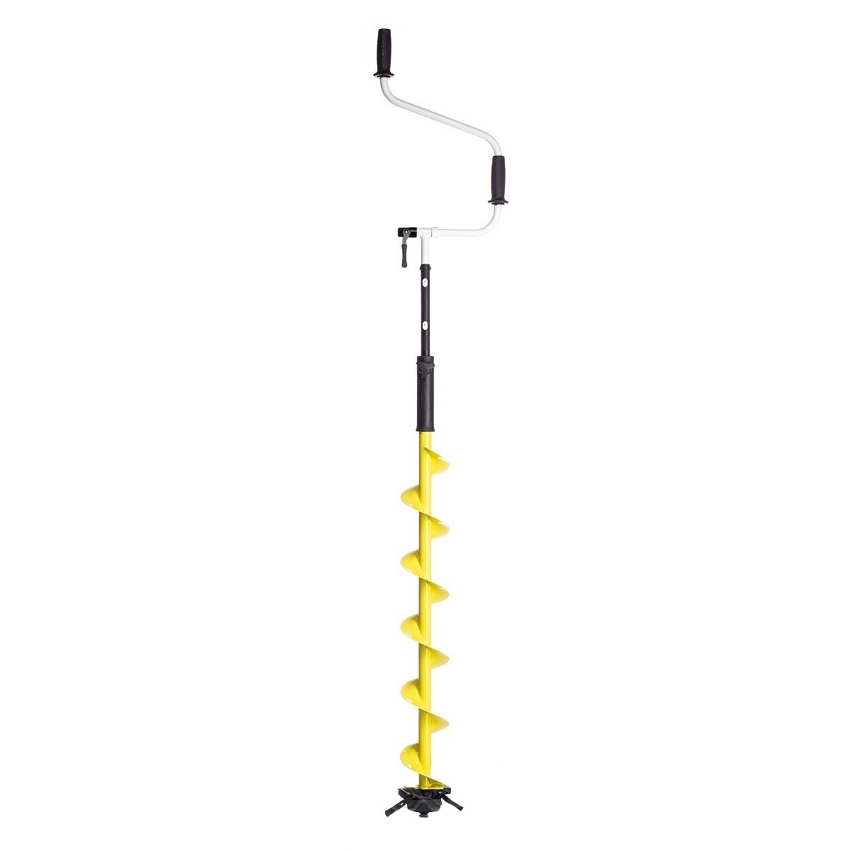 Оснащен двумя рукоятями, одна из которых находится сверху на оси штанги, а вторая вынесена в сторону. В процессе бурения лунки рыболов придерживает бур за рукоятку одной рукой, а другой вращает инструмент. Эта модель считается более устойчивой, так как двумя руками удобнее контролировать положение бура.