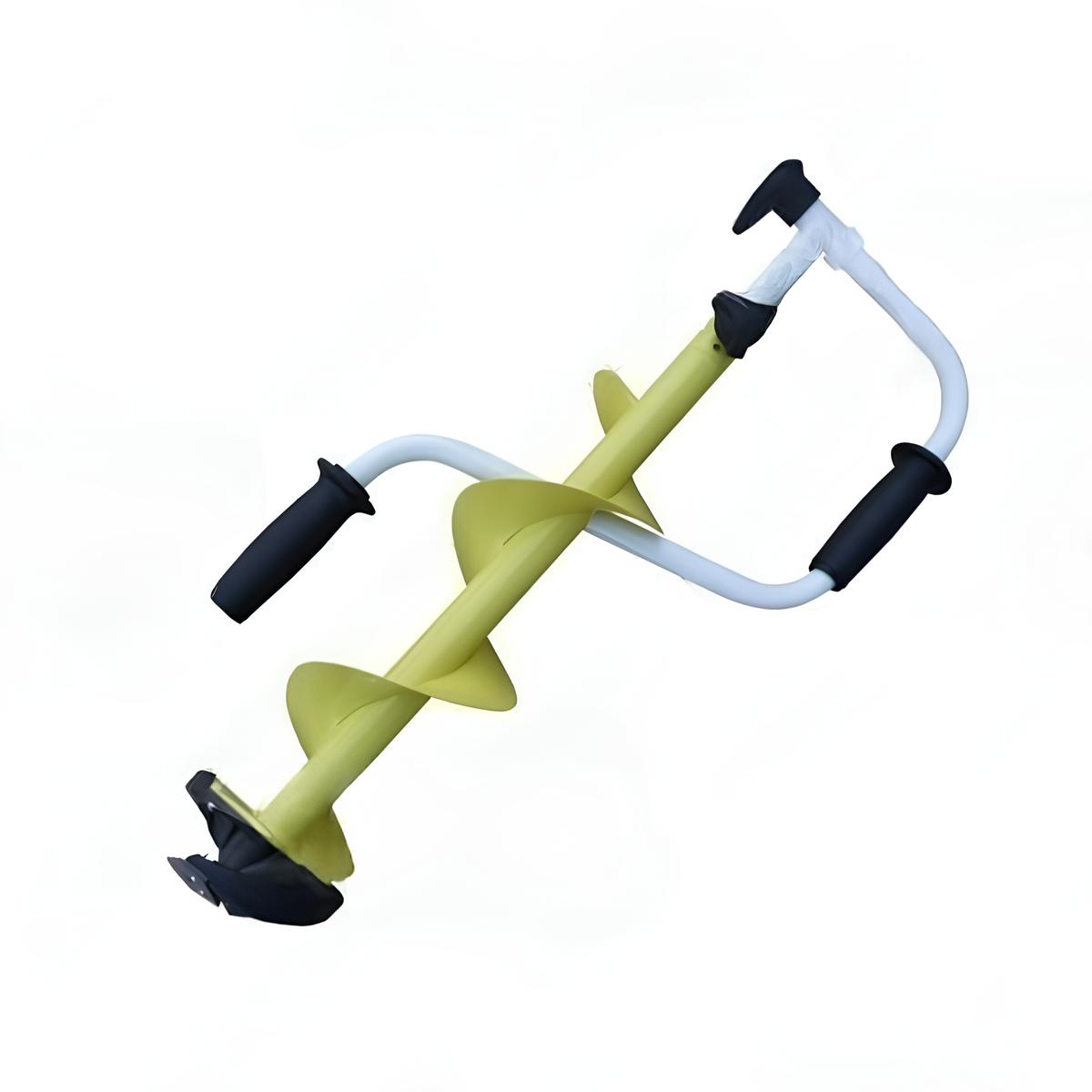 Двуручный бур имеет рукоятки, вынесенные за ось штанги. Неподготовленным рыбакам он может показаться неудобным, так как для бурения требуется определенный навык. Однако нагрузка распределяется на обе руки, что позволяет сделать лунку быстрее и с меньшей затратой сил.