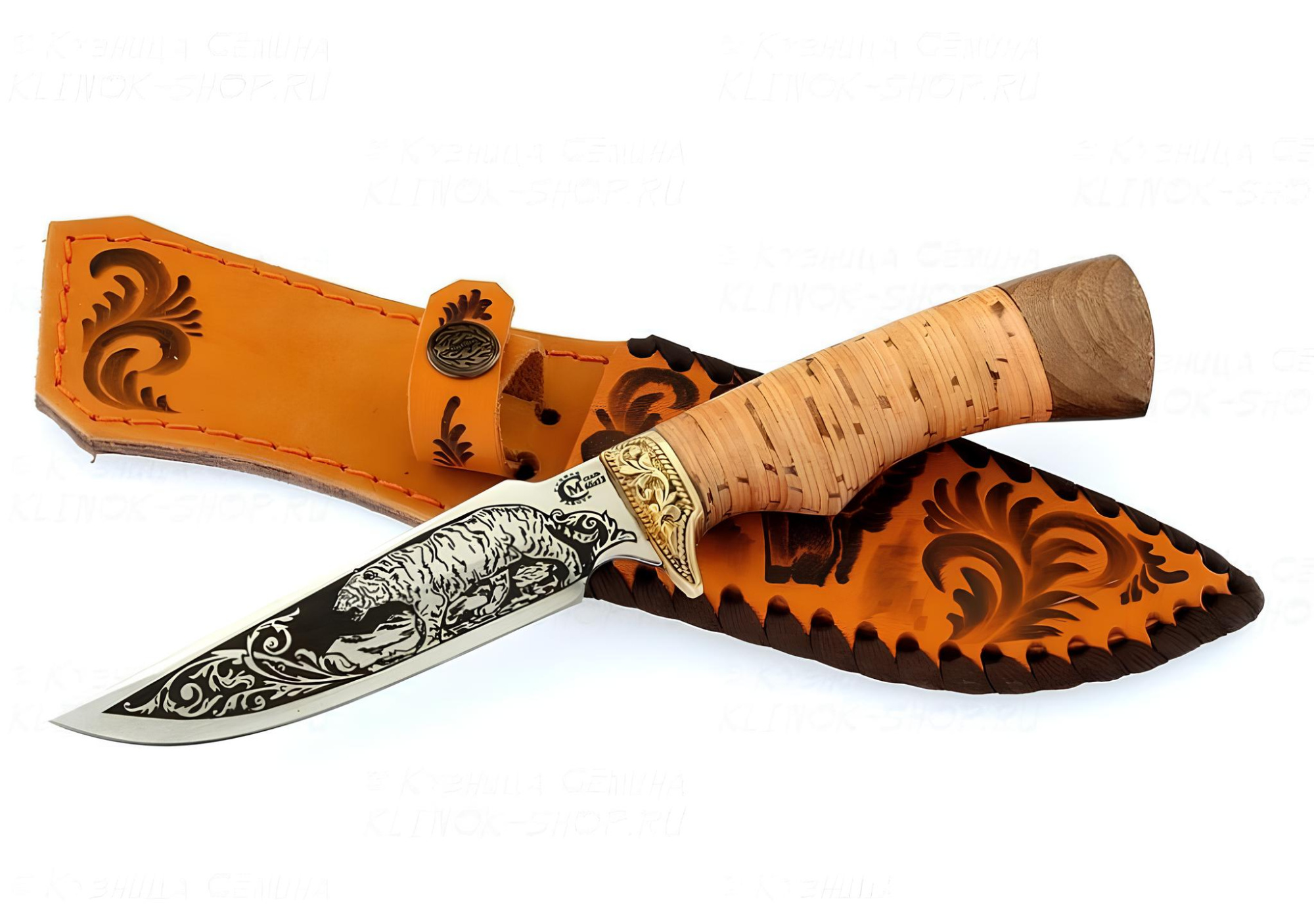 *Нож Следопыт, ст.65х13, береста/амазакуйя, литье, гравировка